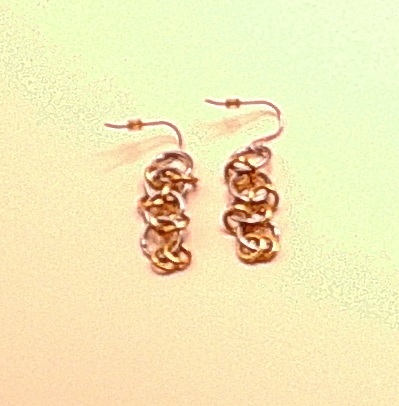 These earrings were made as part of a necklace, bracelet, anklet, and earring set. A simple and intricate weave.