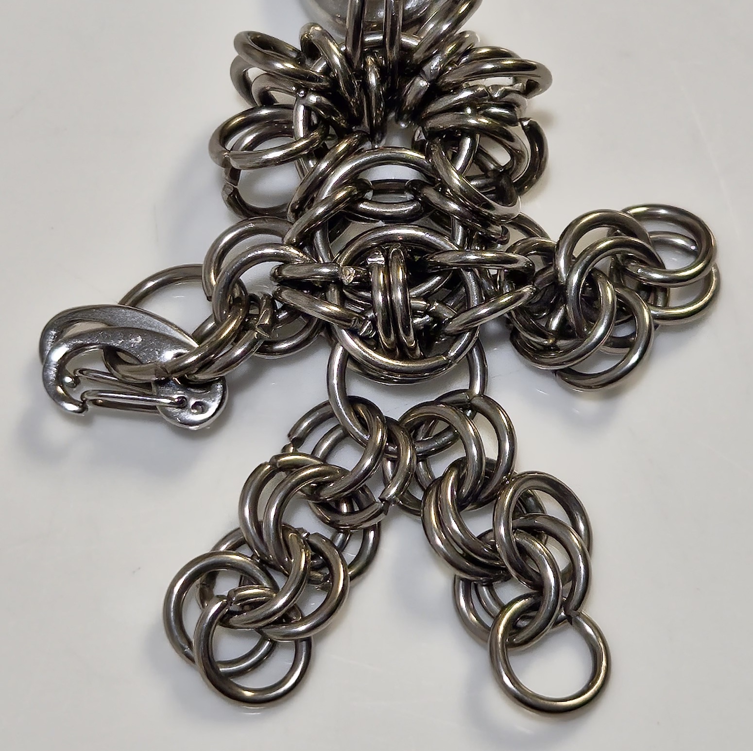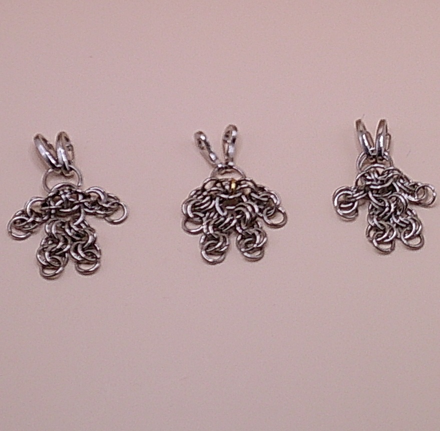 We’re absolutely sure everyone thinks about what a small human made from chainmail would look like, so we made it for you! Double clasps on head. Variations are possible.