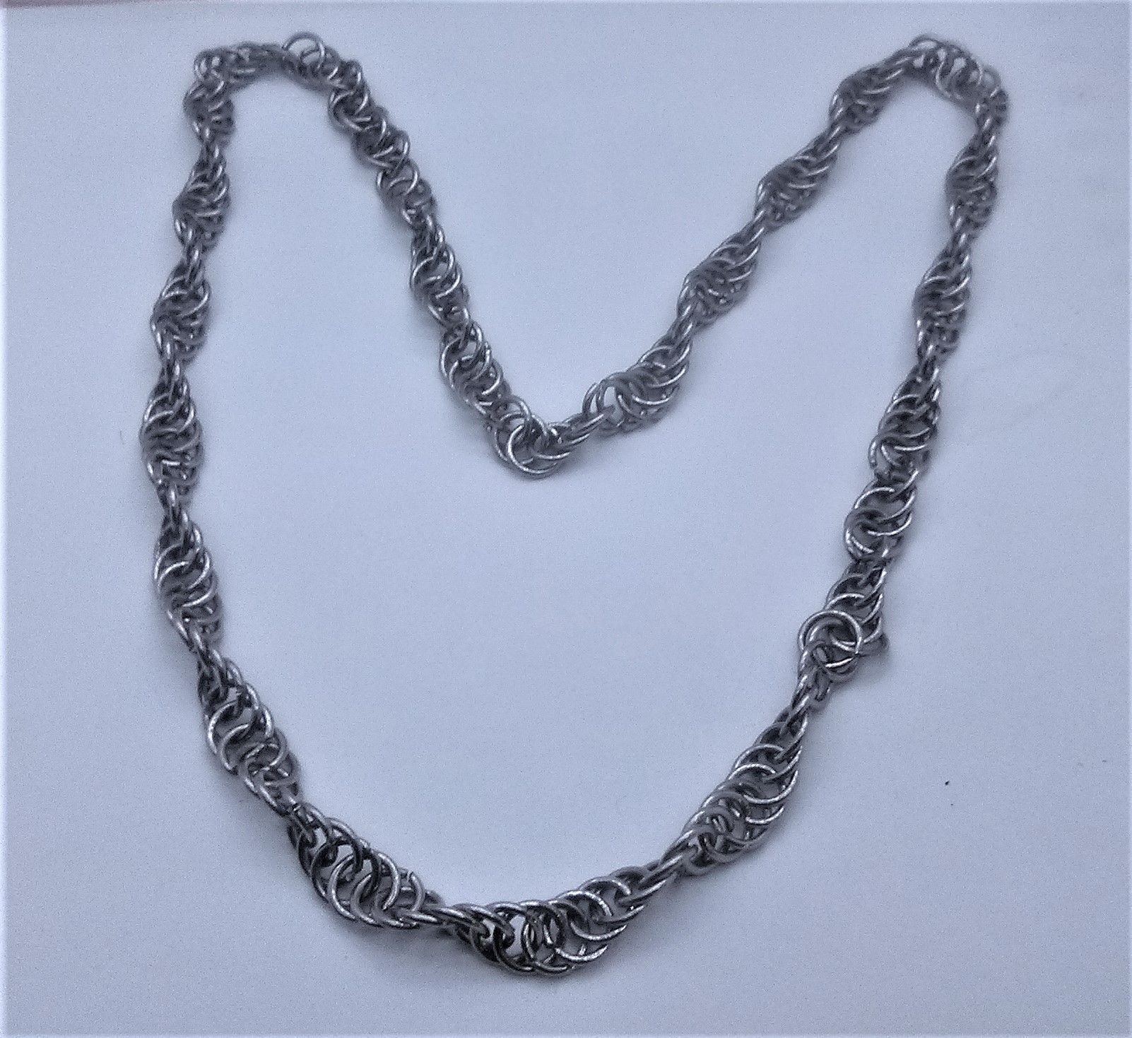 Kinged Double Flower Units in Stainless connected with Rubber Rings. No clasp.